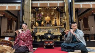 篠笛麻の会は、神社やお寺、日本庭園などさまざまな場所で演奏活動を行なっており、