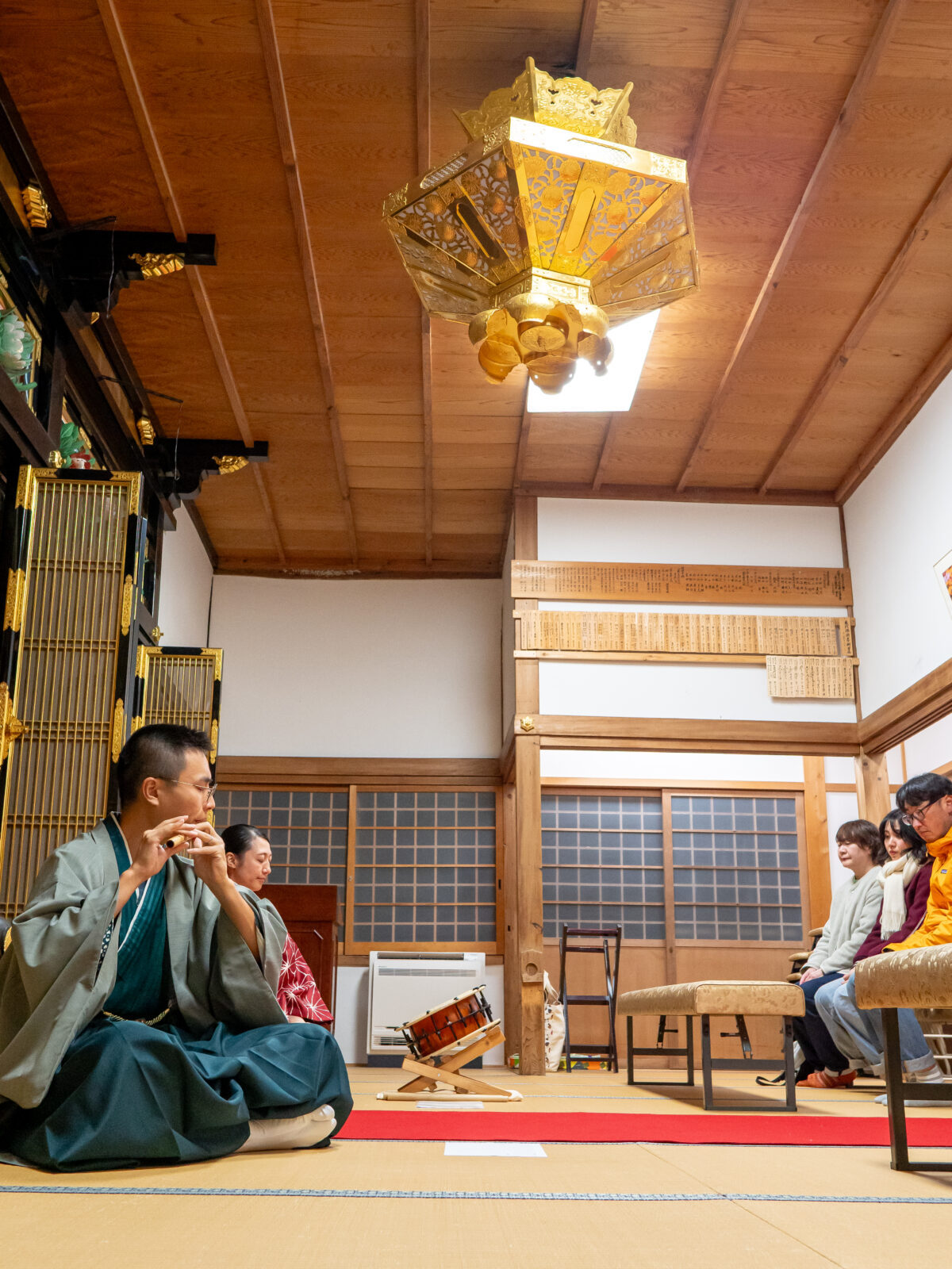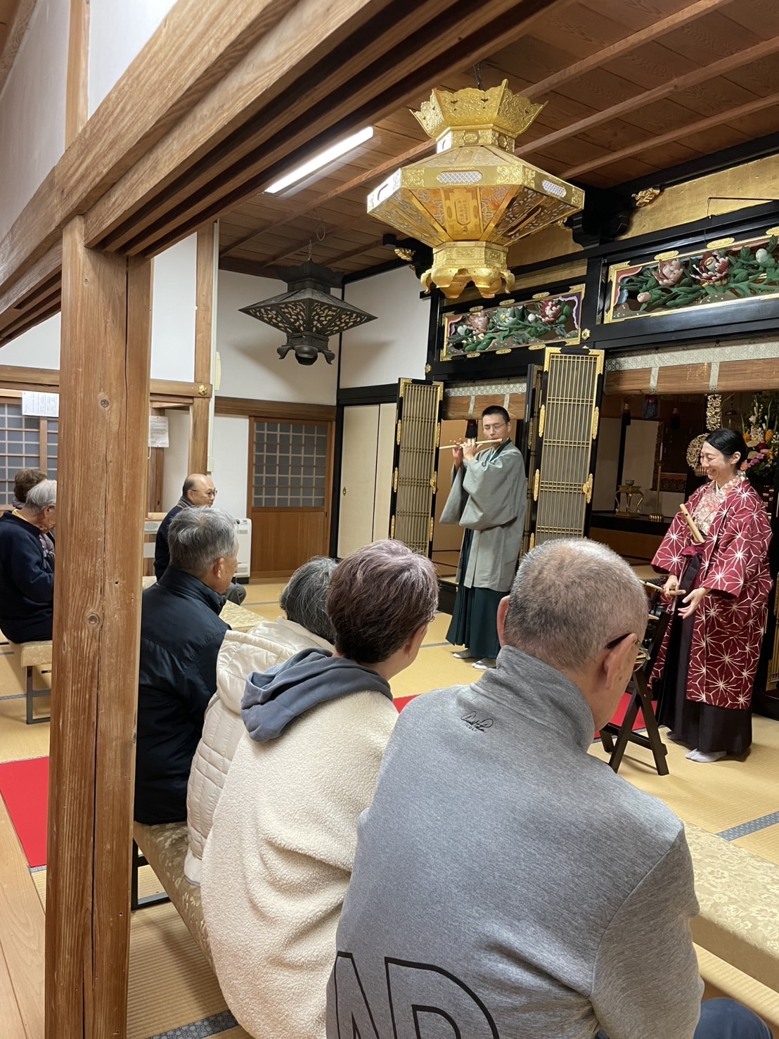 本堂の中で、「紅葉」や「夕焼け小焼け」など秋の曲を数多く演奏しました。